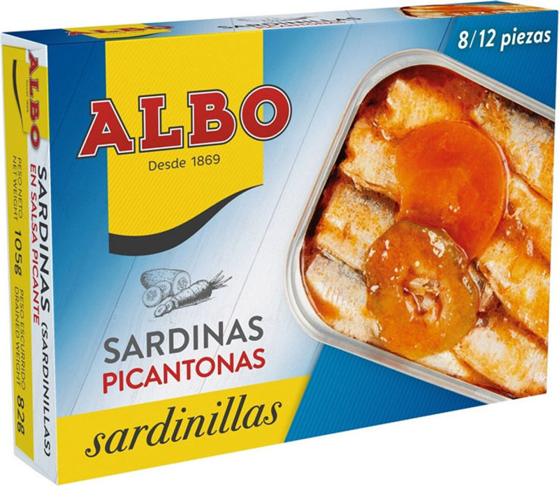 Indulge your palate with Albo's Sardinillas en salsa picantona, an exquisite taste of Spain delivered straight to your kitchen. This canned fish, featuring small sardines bathed in a tantalizing spicy sauce, is a taste sensation that will transport you to the golden coasts of Spain. Sustainably sourced and packed with essential nutrients like omega-3 fatty acids, proteins, and a wealth of vitamins, these sardines are as healthy as they are delicious. Coupled with ingredients like sunflower oil, tomatoes, red pepper, carrot, gherkin, onion, spices, natural flavor, and salt, the outcome is an authentic Spanish delicacy that promises to spice up your meals.