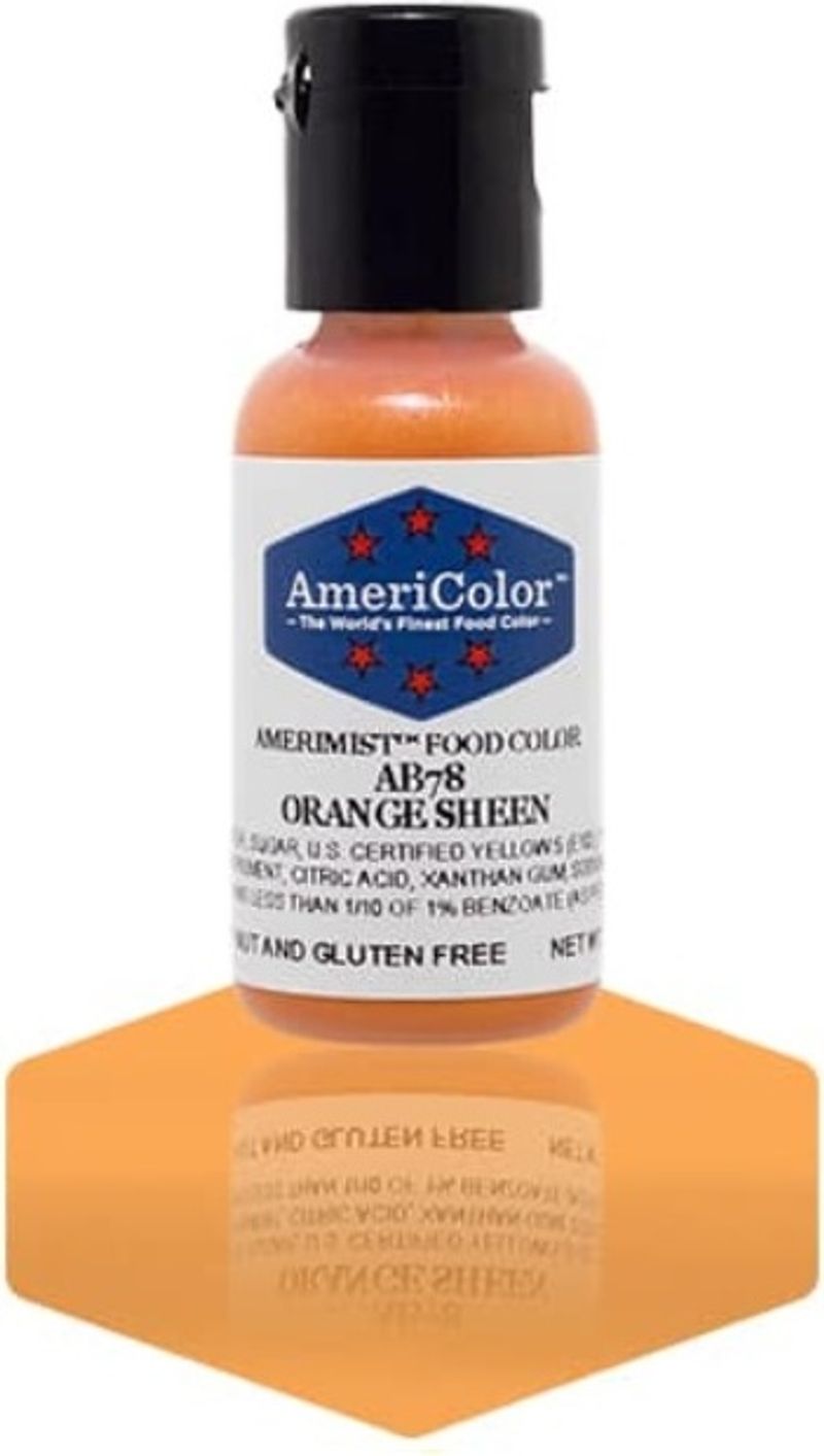 Unleash your creativity with AIRBRUSH COLOR ORANGE SHEEN 0.65OZ. This vibrant, high-quality airbrush color is perfect for adding a touch of orange shine to your cakes, cookies, and confections. Whether you're a professional baker or an enthusiastic home cook, this product allows you to create visually stunning culinary masterpieces. Its easy-to-use nature ensures a professional finish every time.