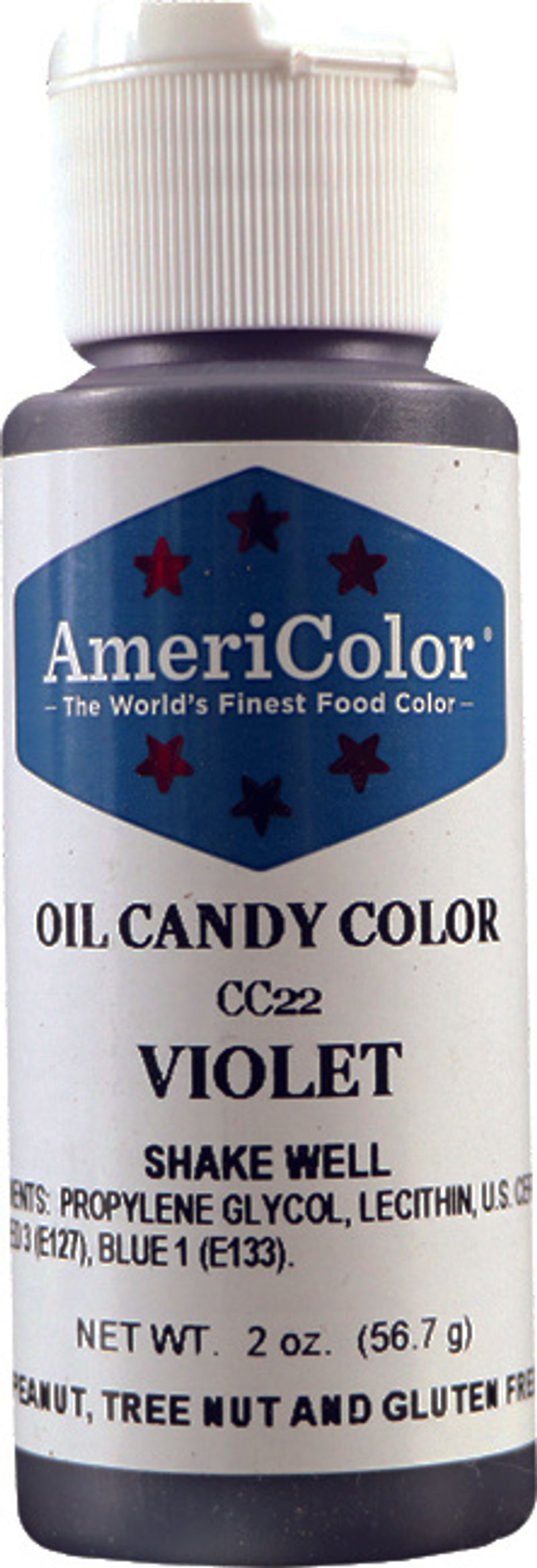 Unleash your creativity and add a pop of color to your culinary creations with our CANDY COLOR OIL VIOLET 2OZ. This vibrant food coloring is highly concentrated, ensuring you get the rich, intense violet hue you desire. It's perfect for candy making, cake decorating, and any other confectionery endeavor. This product is proudly made with high-quality ingredients, promising a reliable and consistent result each time.