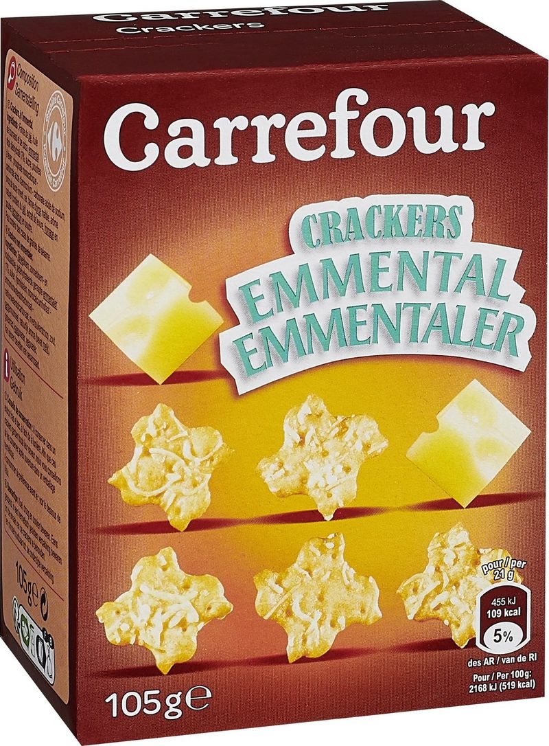 Indulge your taste buds with the rich, creamy flavors of Emmental Cheese Crackers brought to you by Carrefour. A high-quality, delectable snack, these crackers are made with the finest ingredients like wheat flour, sunflower and rapeseed oil, and generously sprinkled with dehydrated grated emmental cheese. They are baked to perfection, providing you with a crunchy texture that perfectly complements the burst of savory flavors. These crackers are the perfect addition to your pantry, whether you're looking for an on-the-go snack or a gourmet addition to your aperitif spread.