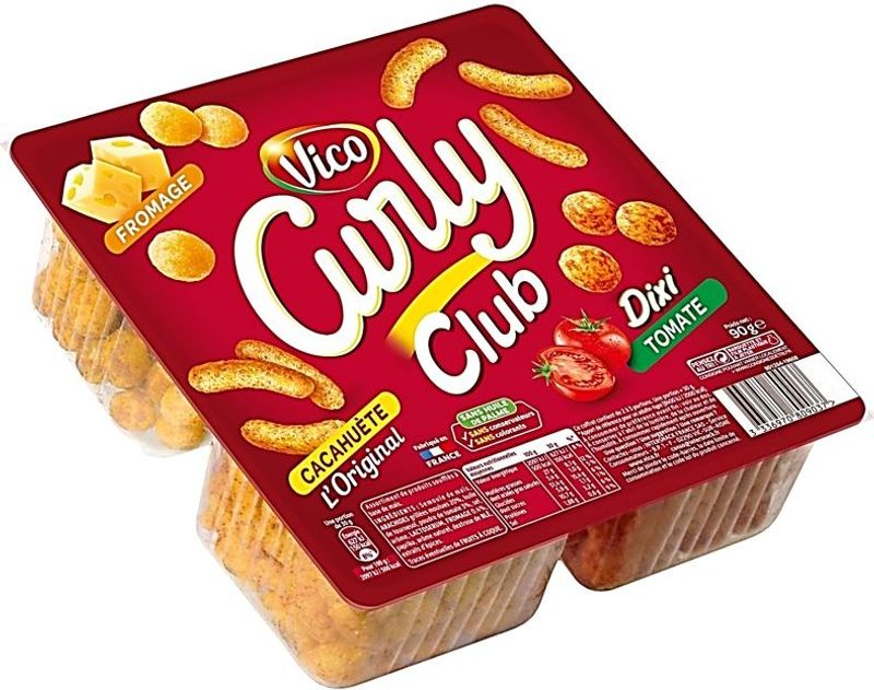 Curly Club, Cacahuete, Fromage, Tomate.