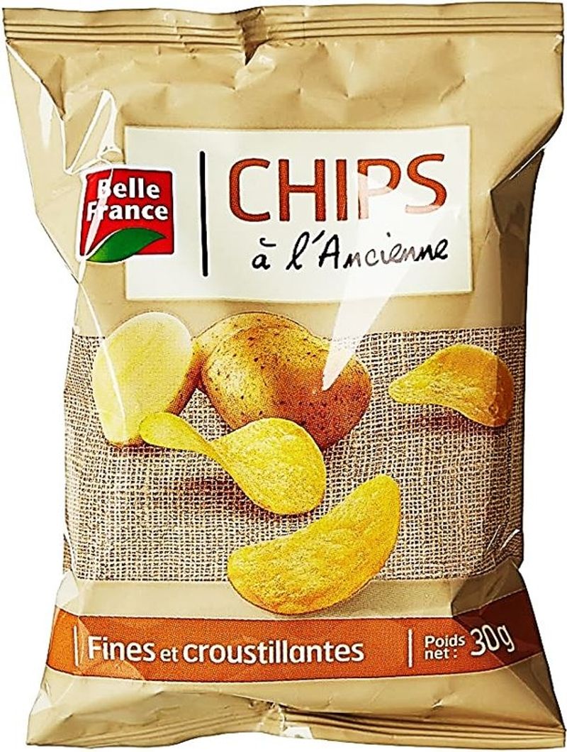 Experience the exquisite taste of Belle France's Old-Fashioned Chips, a premium offering under the well-loved category of savoury groceries. Each chip is crafted from 61.7% real potatoes, fried to perfection in healthy sunflower oil, and seasoned just right with salt. The chips are free from artificial flavors and preservatives, promising you an authentic, home-cooked taste. Enjoy the perfect crunch in every bite, with a hint of unique flavors that are triggered by possible traces of celery, gluten, milk, mustard, soya, and peanuts.