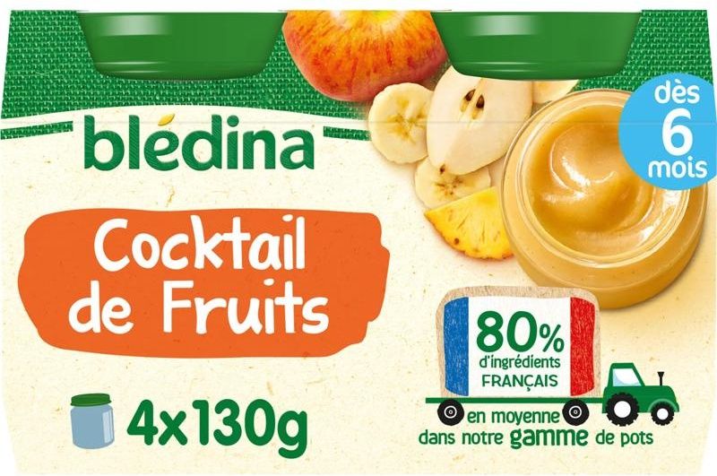Introduce your little one to the delicious world of fruits with Blédina's Fruit Cocktail Compote. Specifically designed for babies from 6 months, this delightful compote blends the highest quality of apple, pear, banana, and pineapple purees to create a smooth, delectable treat perfect for your baby's developing taste buds. As a trusted brand in baby food, Blédina ensures the utmost standards of safety and nutrition. Each jar of this Fruit Cocktail Compote is enriched with ascorbic acid, a natural antioxidant, and a hint of concentrated lemon juice, depending on the acidity of the fruit.