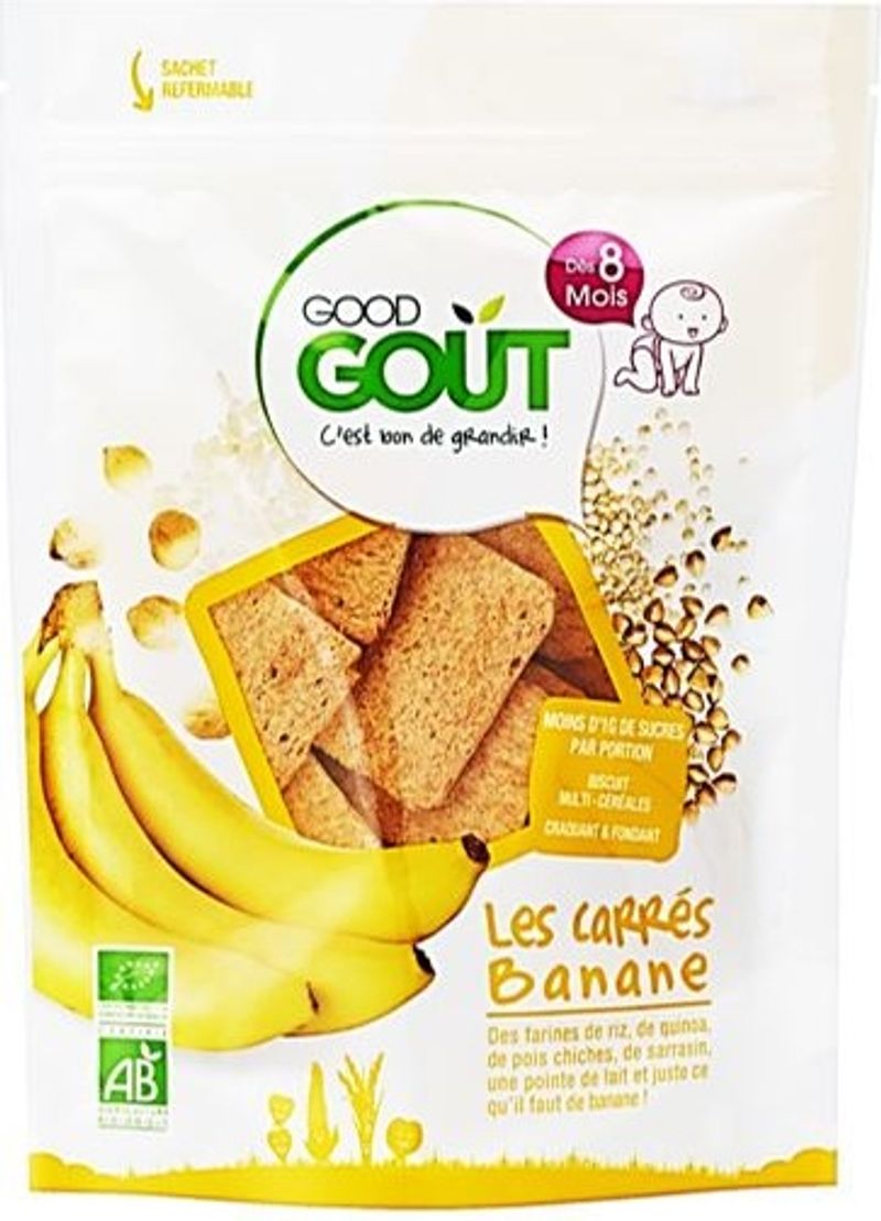 Introducing Good Goût's Organic Banana Squares Biscuits for babies aged 8+ months! Bursting with the goodness of natural and nutritious organic ingredients, these crunchy little squares are the perfect snack for your growing little one. With 65% organic rice flour, 10% organic chick-pea flour, and a blend of organic whole milk powder, banana powder, quinoa flour and buckwheat flour, each biscuit is packed full of vitamins and essential nutrients that your child needs for their development. Plus, they're gluten-free, making them gentle on tiny tummies.