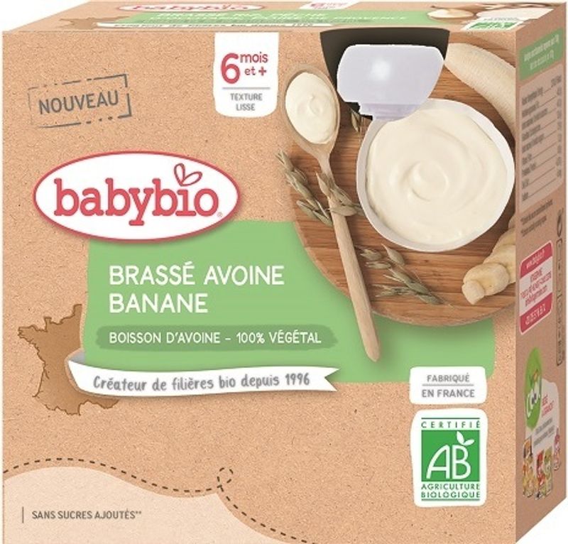 Babybio's Organic Banana Oat Yogurt is a nutritious and delicious snack perfect for your little one. Made with a generous 57% oat drink that's derived from organic oat flakes and pure water, it's an excellent source of dietary fiber that aids in digestion. The luscious 38% banana from Ecuador gives it a delightful, naturally sweet flavor that babies love, while a touch of concentrated lemon juice from Spain adds a hint of tang. This organic yogurt is not only delicious but also packed with vital nutrients that support the healthy growth and development of your baby.