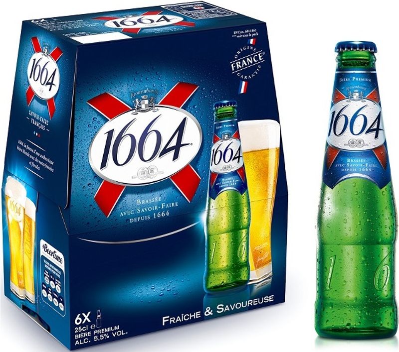 Experience the unique taste of Kronenbourg's Beer 1664, a premium French lager with a rich heritage dating back to 1664. Crafted with water, barley malt, glucose syrup, wheat, wheat malt, and hop extract, this distinct beverage offers a harmonious balance between malt sweetness and hop bitterness. Its 5.5% alcohol content adds a smooth yet spirited kick to your drinking experience. This beer is not just a drink, it's a taste of French tradition, perfect for those who appreciate a quality, full-bodied lager.