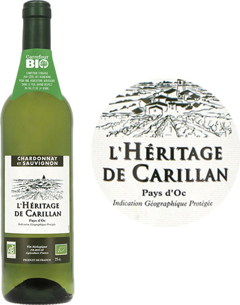 SAUVIGNON ORG PAYS D OC WHITE WINE 75CL\L HERITAGE DE CARILLAN