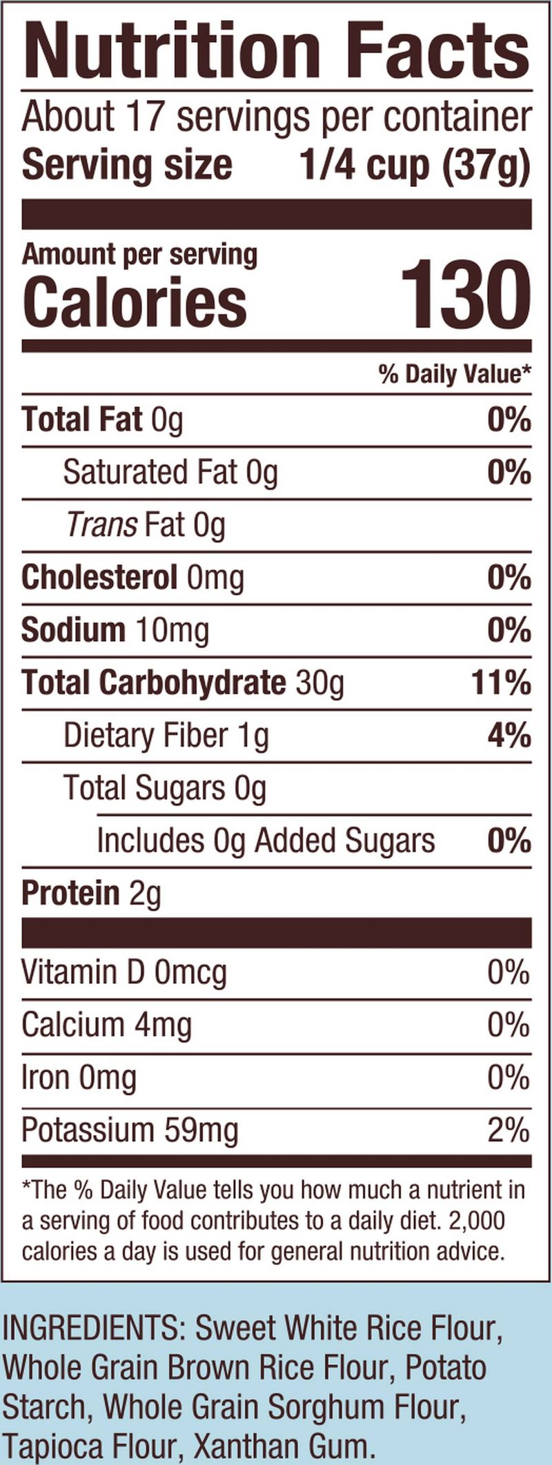 Say hello to a world of tasty gluten-free possibilities with our GF Baking Flour 1-to-1 22OZ. Skillfully formulated and blended with high-quality ingredients such as sweet rice and brown rice flour, potato starch, sorghum flour, tapioca flour and xanthan gum, this flour guarantees terrific taste and texture in your gluten-free baked goods. It's an ideal choice for cookies, cakes, brownies, muffins and more, and is perfect for those with celiac disease or gluten sensitivity. All the ingredients are sourced, processed, and tested in our dedicated gluten-free facilities in the United States, ensuring top-notch quality and safety.