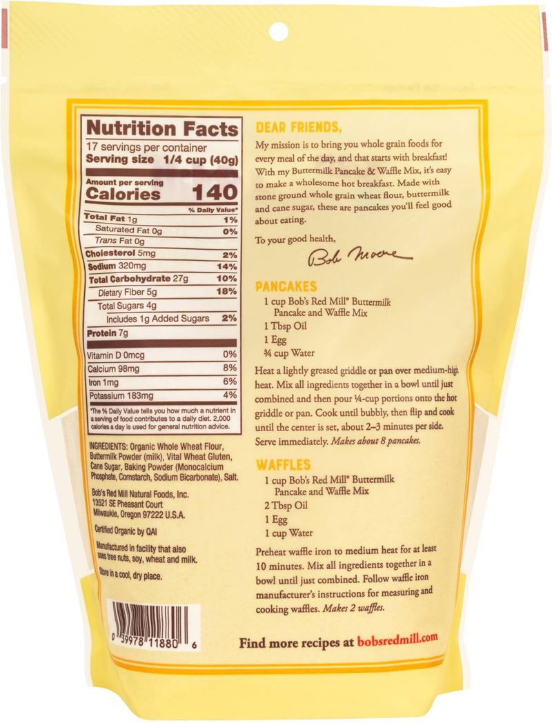 Savor the goodness of homemade buttermilk pancakes with our wholesome 24oz Buttermilk Pancake Mix. Brimming with whole grain nutrients, dietary fiber, calcium and iron, this mix promises a hearty and nutritious start to your day. The blend of organic stone ground whole grain wheat flour, creamy buttermilk, and pure raw sugar ensures a flavor that is truly irresistible. The perfect blend of health and taste, this pancake mix is an excellent choice for an energizing breakfast or a decadent brunch. Made in the United States, it is a testament to authentic American flavors.