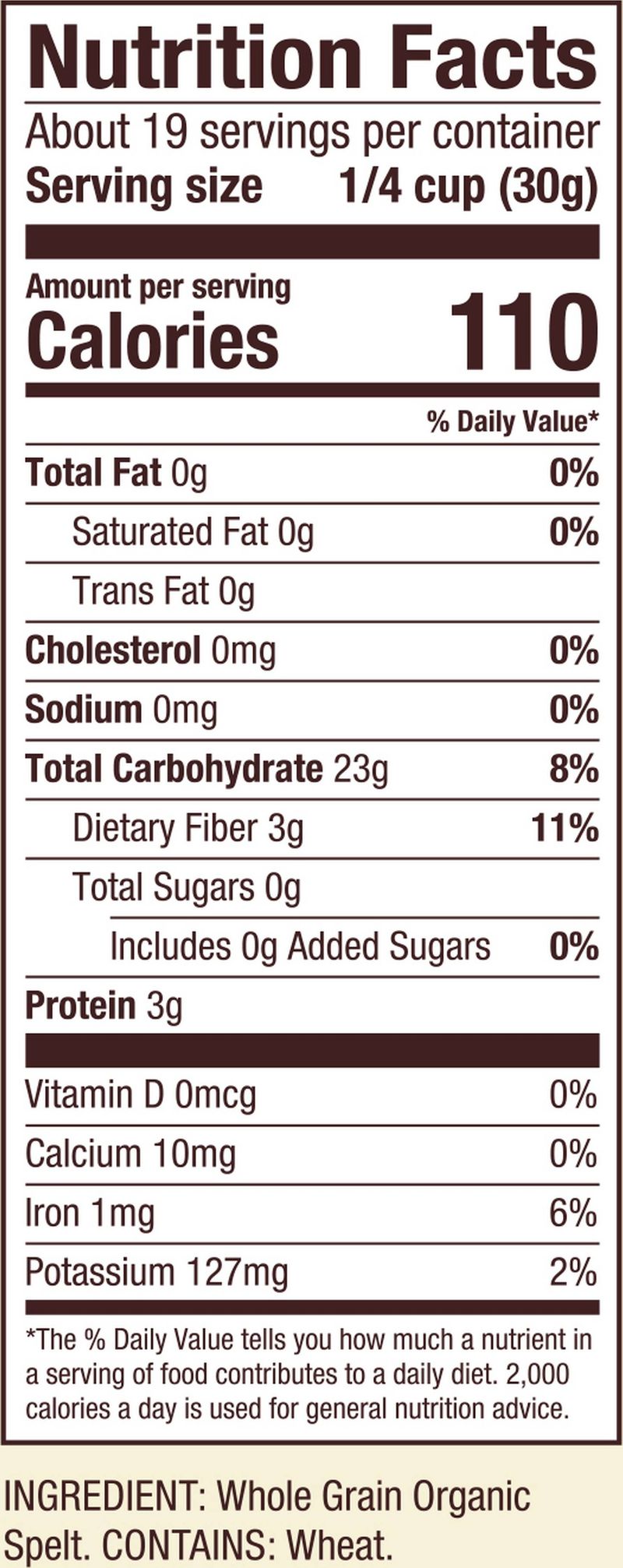 Bob's Red Mill Organic Spelt Flour is a high-quality, nutritious flour made from ancient whole grain spelt. This 20-ounce bag is perfect for adding a nutty and slightly sweet flavor to your favorite recipes. Grown with care and harvested at peak freshness, Bob's Red Mill ensures that every bag contains only the best spelt flour.