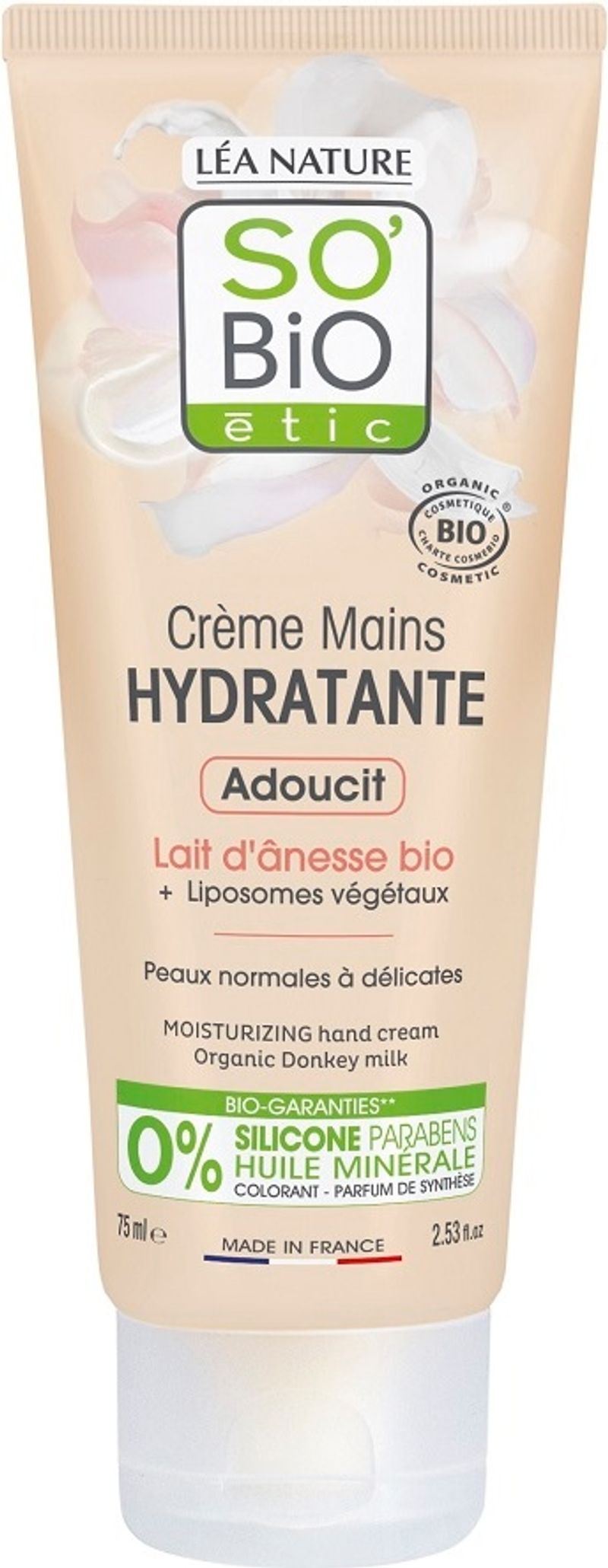 Experience the luxurious care of So’Bio Etic Organic Donkey Milk Hand Cream Moisturizing. This high-quality French hand cream is formulated with organic donkey milk, known for its exceptional nourishing and regenerative properties. Infused with shea butter and aloe barbadensis leaf juice powder, it deeply moisturizes and softens your skin, leaving your hands feeling silky smooth and supple. Enhanced with the soothing properties of witch hazel water and the moisturizing benefits of castor seed oil, this hand cream heals dry, chapped hands while protecting them from environmental stressors. The result - beautifully hydrated, healthy hands and nails.