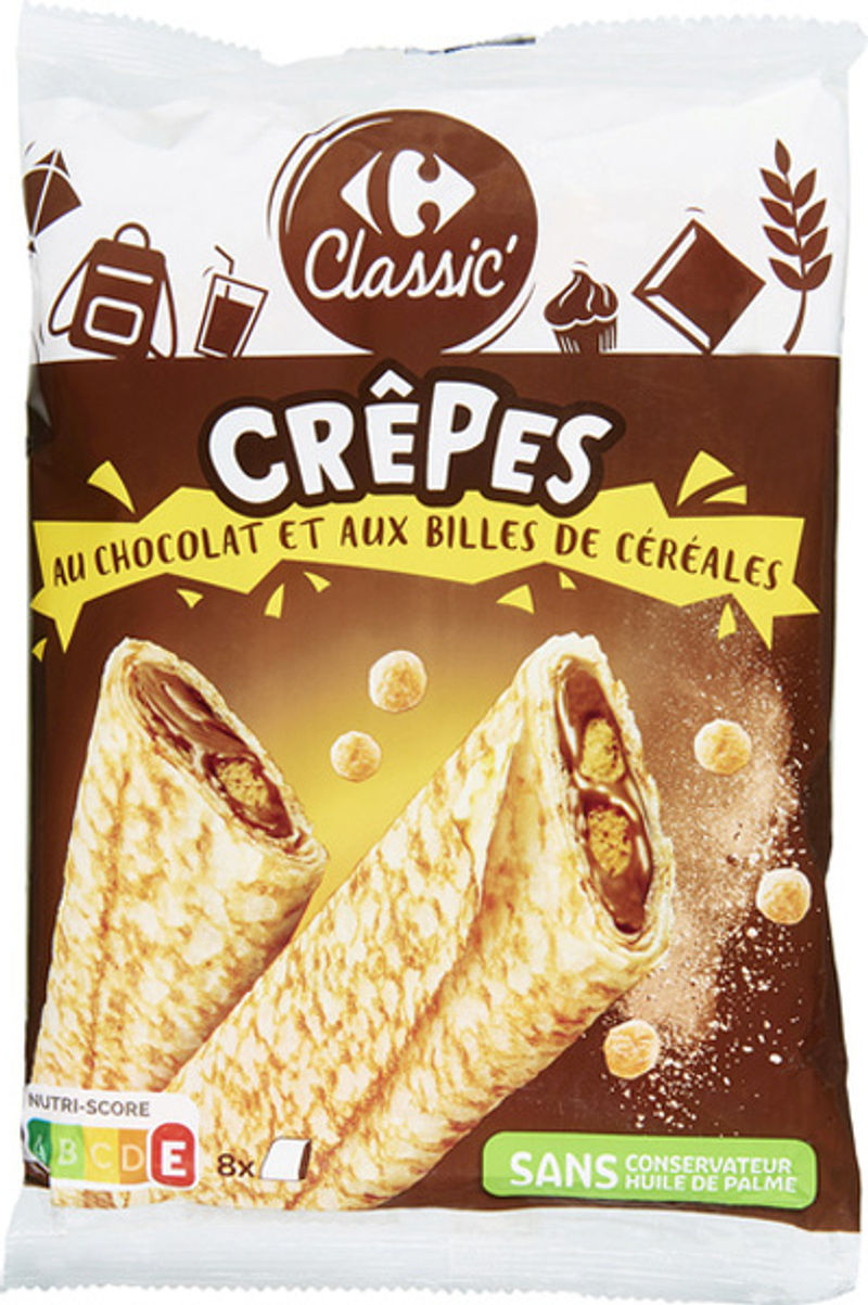 Indulge in a delightful French classic with Carrefour's Chocolate Crepes. Made with fresh whole milk, wheat flour, and extra-fresh eggs, these crepes ensure a soft and fluffy texture. What sets Carrefour's crepes apart is the addition of chocolate-coated biscuit balls that offer a delightful crunch and a luxurious taste of dark chocolate. These crepes also contain a hint of hazelnut paste, enriching the crepe with a nutty flavour. The ingredients are perfectly balanced to give you a taste of sweet, salty and a hint of bitterness, making it a delightful treat for breakfast or dessert.