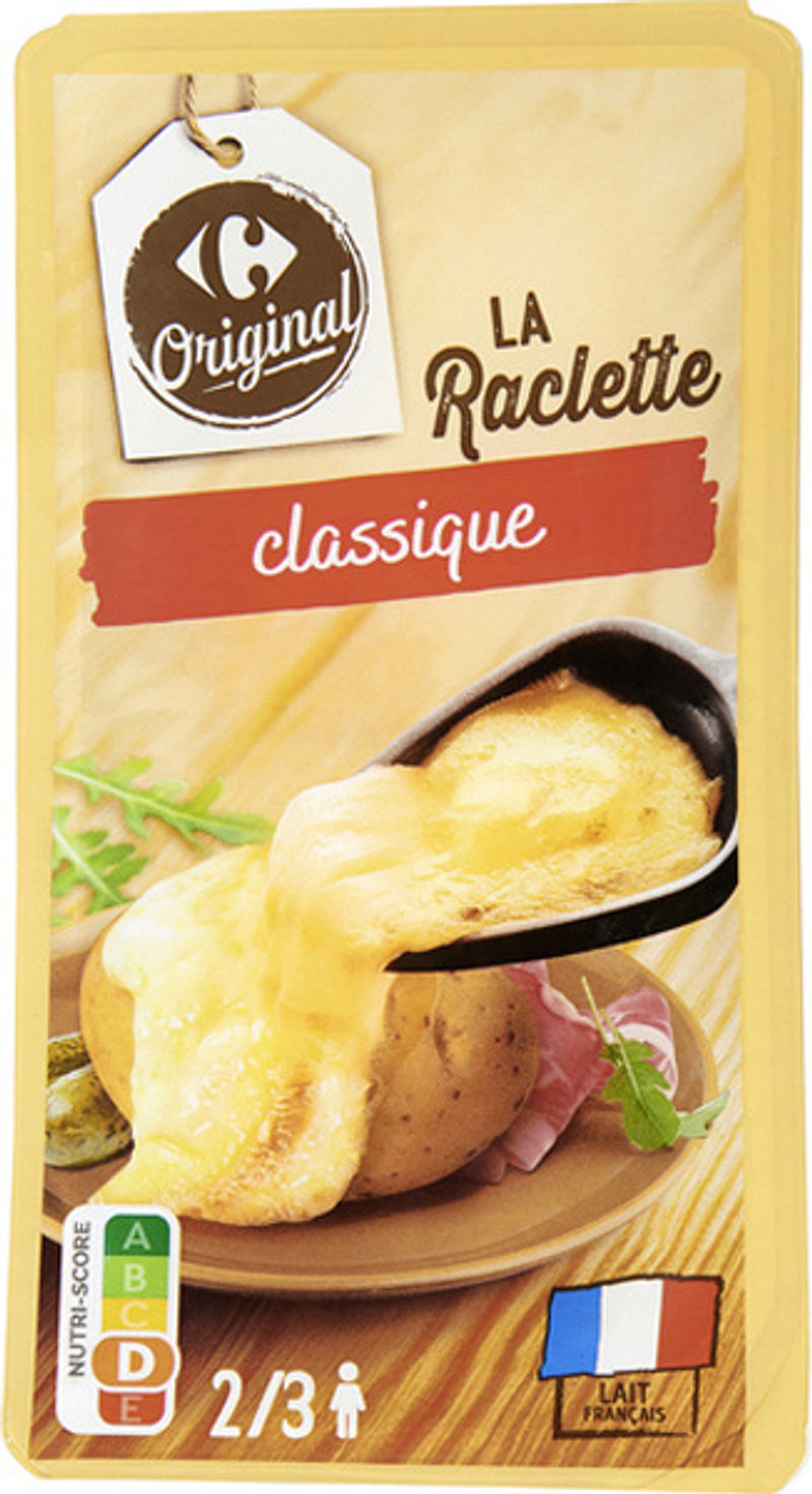 Discover the irresistible flavor of the Sliced Raclette Cheese from Carrefour. This is a true French delight, made from pasteurized cow's milk, lactic ferments, salt, rennet and a hint of natamycin as a natural preservative. With its creamy texture and unmistakable rich taste, it has 48% fat in dry matter, making it the perfect indulgence for cheese lovers. Raclette cheese is well-known for its excellent melting quality, becoming irresistibly oozy and gooey when heated, making it an ideal choice for a traditional raclette or fondue.