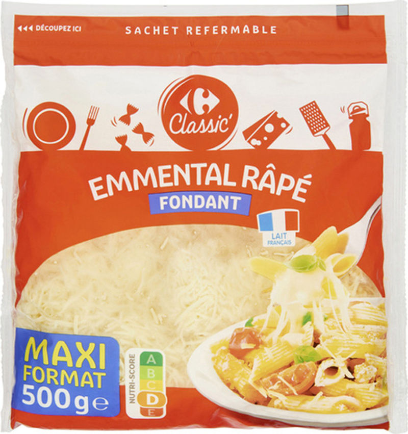Carrefour's Soft Grated Emmental cheese is a beautiful culinary experience made from fresh pasteurized milk sourced directly from the idyllic French countryside. Each handful of this finely grated cheese is a testament to the rich and creamy flavor of Emmental, perfect for adding a punch of flavor to your dishes. Packaged in a maxi format, this economical pack size gives you more cheesy goodness to love. The re-sealable bag ensures your cheese stays fresh, maintaining its delightful flavor and texture with every use.