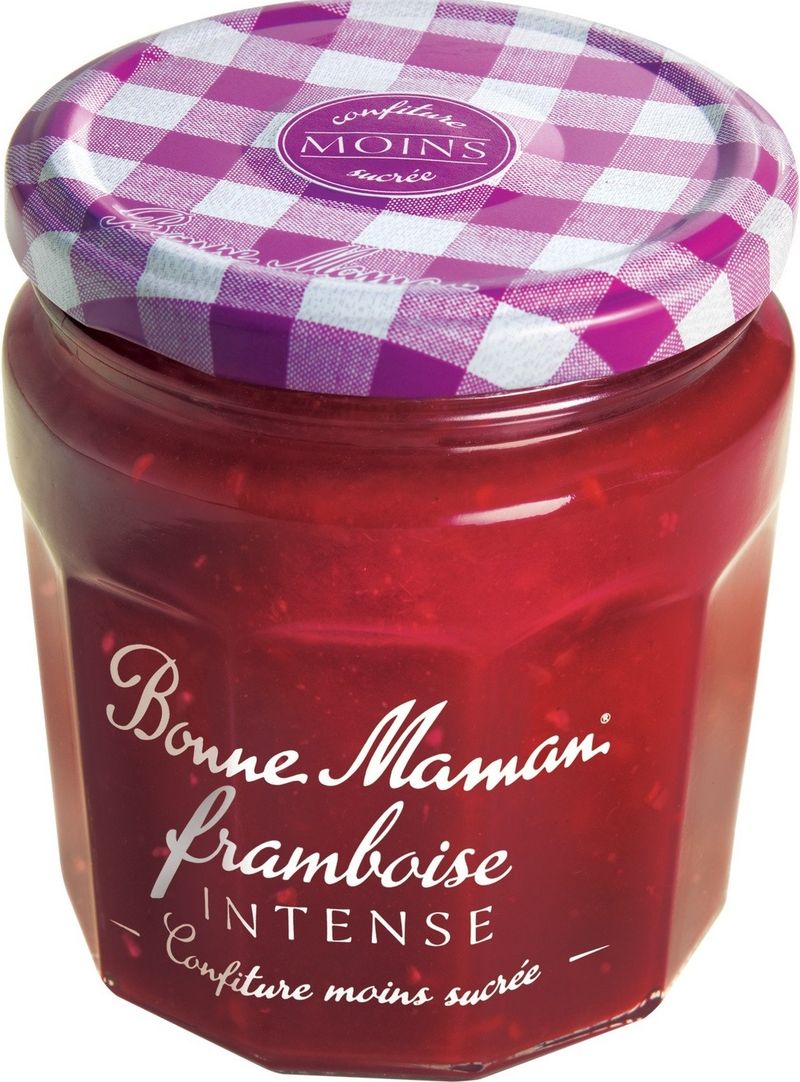 Savor a spoonful of intense raspberry delight with Bonne Maman's Intense Raspberry Jam. Hand-picked at the peak of ripeness, the raspberries are delicately combined with just the right amount of sugar and a dash of concentrated lemon juice to maintain their naturally intense flavor. A gentle touch of fruit pectin works as a gelling agent to create this jam's pleasingly spreadable texture. With its rich color and all-natural ingredients, this jam is a sumptuous treat that adds a sweetly tart punch to your breakfast and snacks.