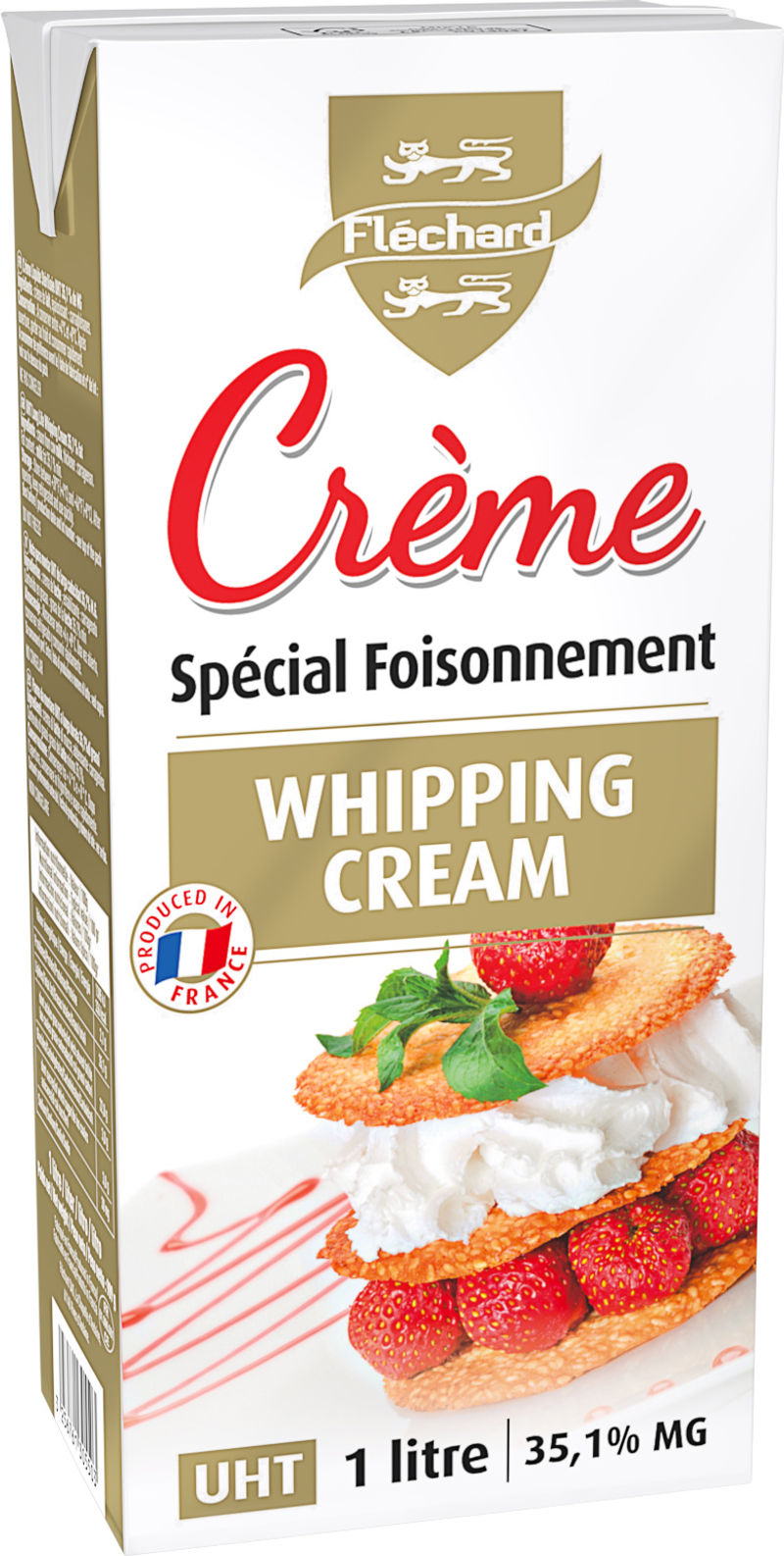 Premium dairy whipping cream with 35% fat content. UHT treated for extended shelf life while retaining a rich and creamy texture.How to use:Chill and whip for best volume. Use in desserts, sauces, or toppings.Suggested Recipes:Whipped cream topping, ganache, creamy soups, tiramisu.Ingredients:Cream (Milk), stabiliserCountry of origin:France