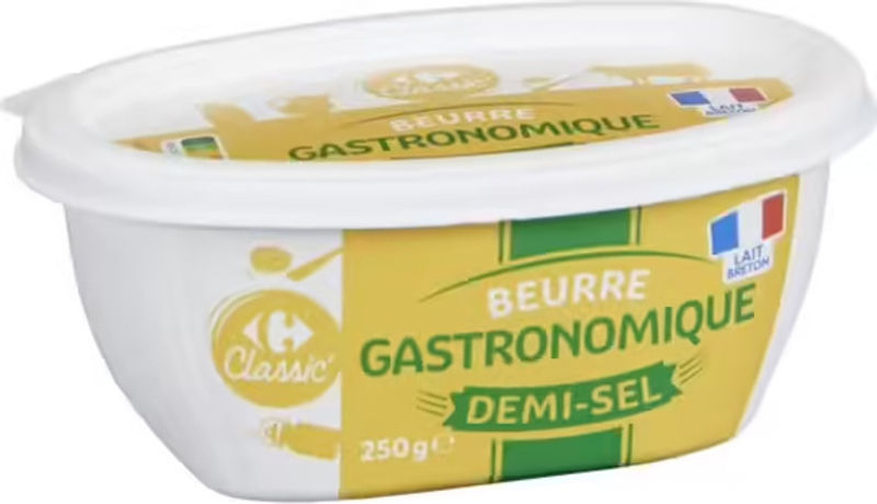 Indulge in the rich and creamy taste of Carrefour's Salted Butter. Made with pasteurised French milk cream, this butter promises a pure, authentic flavor that will elevate your dishes. The perfect combination of cream and salt, with a hint of lactic ferments, offers an exquisite taste that distinguishes Carrefour's Salted Butter from others. This high-quality butter is the ideal addition to any meal, providing a source of energy and contributing to a healthy diet.