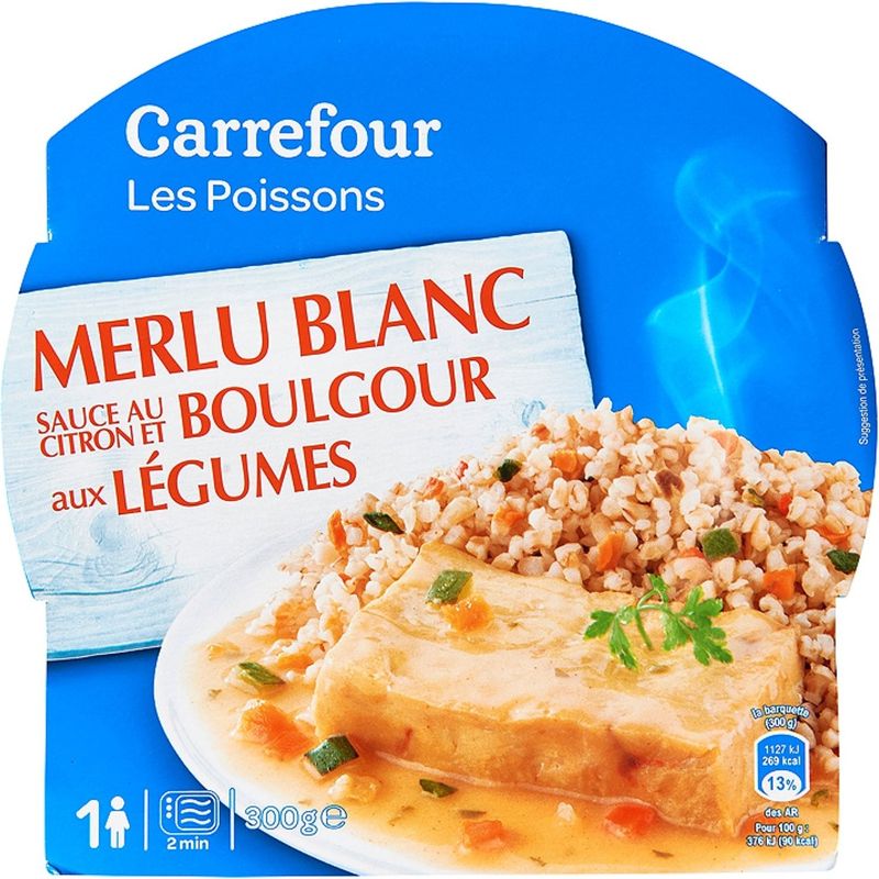 Experience the fresh and vibrant flavors of the sea with Carrefour's White Hake With Bulgur and Vegetables With Lemon Sauce. Each can is packed with delicious, tender portions of white hake fillets, paired with carefully precooked boulgour and a variety of vegetables such as zucchinis and carrots. The medley is seamlessly brought together with a tangy lemon sauce that will have your palate dancing with delight. This canned fish is not only convenient, it's also a healthy option, packed with high-quality proteins, wheat, natural flavors, and colors from curcumin and paprika pepper extract. Please be aware that the product may contain traces of eggs.