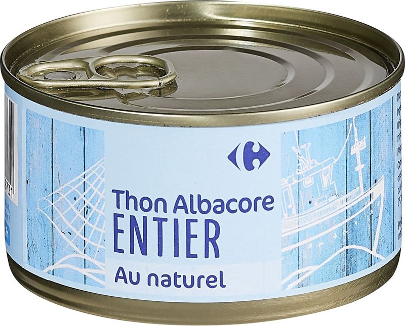 Experience the pure, natural goodness of the sea with Carrefour's Natural Whole Tuna. Hand-selected for their high-quality, these albacore tunas are carefully packed in a simple blend of water and salt. Known for its light, rich flavour and firm texture, our albacore tuna is a delicious and healthy choice. It is an excellent source of protein, vitamins, and omega-3 fatty acids that can contribute to a balanced diet. Whether you're making a classic tuna sandwich or an elegant seafood pasta, this Natural Whole Tuna from Carrefour is sure to impress with its exceptional taste and texture.