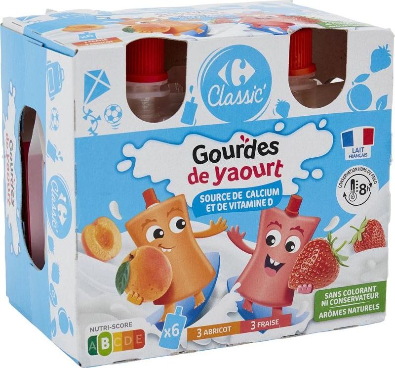 Indulge in a delightful blend of fruity flavours with Carrefour's Strawberry and Apricot Yoghurt Gourd. This lusciously creamy yoghurt is made from quality ingredients including fresh skimmed milk, sugar, and an irresistible blend of strawberry or apricot puree. The yoghurt is also enriched with Vitamin D and lactic ferments, ensuring a nutritious and wholesome treat. It's a delicious way to provide your body with essential dairy nutrients while satisfying your sweet tooth. Perfect for kids and adults alike, this French-style yoghurt gourd offers an authentic taste experience that's sure to brighten your day.