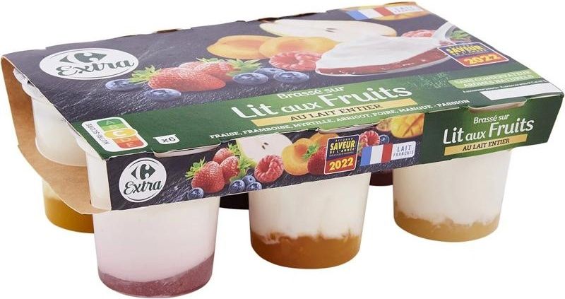 Indulge in the luxurious taste of Carrefour's Yoghurt On A Bed Of Fruit. This delightful dessert brings together the creamy richness of pasteurised whole milk and the natural sweetness of various fruits, offering an exquisite blend of health and taste. Each serving contains a high percentage of dairy, making it an excellent source of calcium and protein. Available in six distinct flavours - strawberry, raspberry, blueberry, apricot, pear, and mango/passion - it caters to every fruity craving.