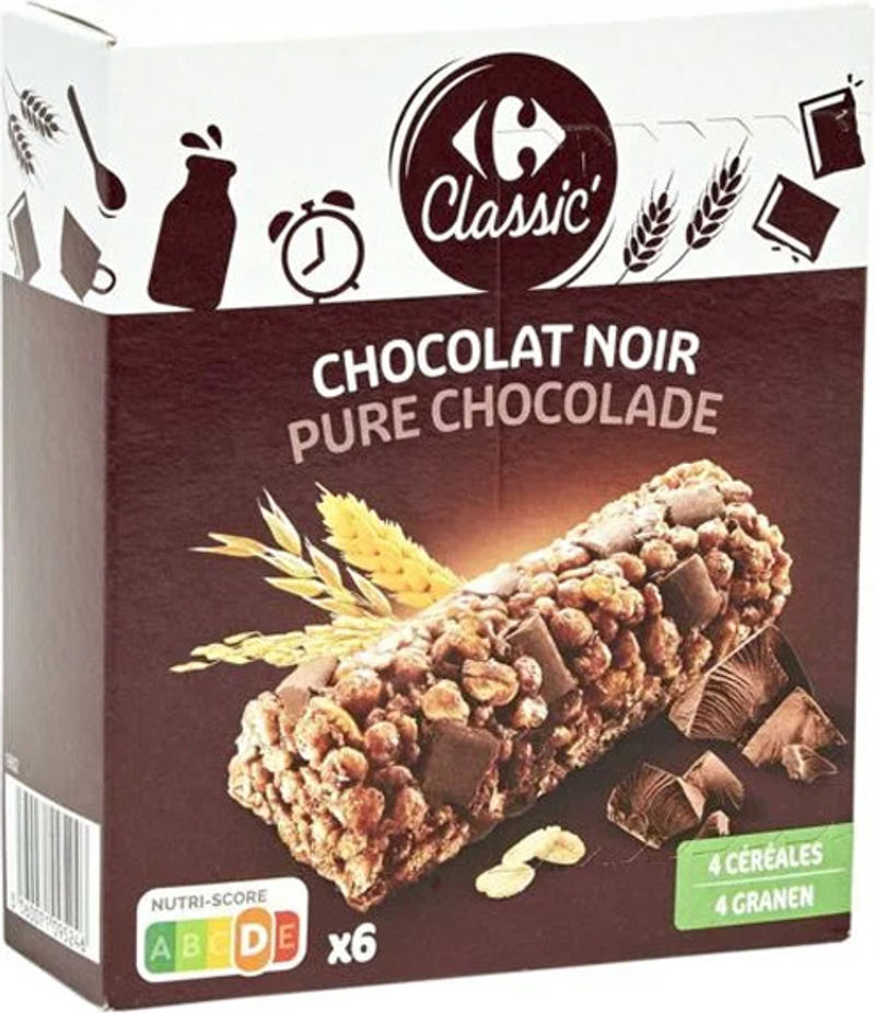 Indulge yourself in a healthy and delicious treat with Carrefour's Dark Chocolate Cereal Bars. These sumptuous bars are a perfect blend of wholesome ingredients like oatmeal, wheat flour, corn, and rice flour, topped with a generous layer of rich dark chocolate. With 22% dark chocolate, these cereal bars offer a delightful mix of crunch and creaminess, making your breakfast or snack time extra special. Besides being flavourful, dark chocolate is known to be rich in antioxidants, adding an extra health benefit to your daily diet. Please note, these bars may contain traces of nuts, milk, and peanuts.