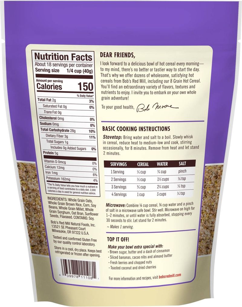 Pour your desired amount of GF Cereal 8 Grain into a bowl and add milk or your preferred dairy substitute. Enjoy as a fulfilling breakfast or a quick, nutritious snack.