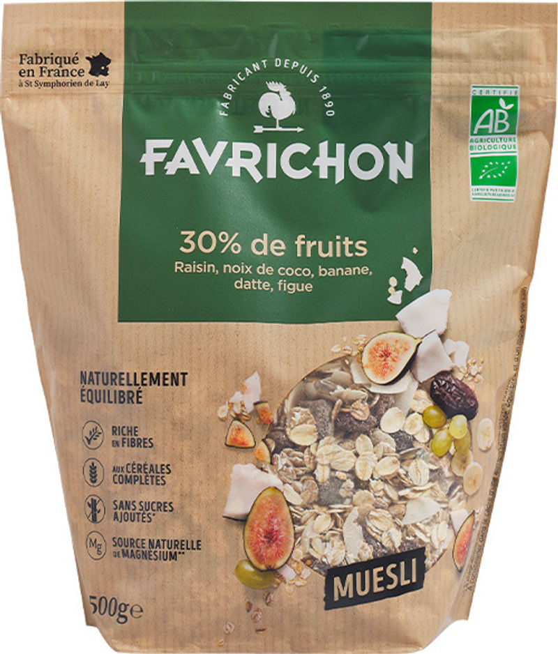 Treat yourself to a nourishing and delicious start to your day with Favrichon's Organic 30% Fruit Muesli. Made with a wholesome medley of 70% whole grains including oat flakes, wheat flakes, barley flakes, and rye flakes, this muesli provides that much-needed energy boost for your busy days. The added joy of 30% fruits like grapes, coconut, bananas, dates, and figs, not only enriches the flavor but also provides essential nutrients and dietary fiber. Favrichon, a trusted French brand, guarantees this product to be organic, ensuring the highest quality ingredients for your health and wellbeing.