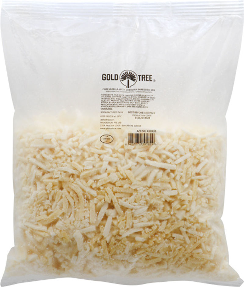 SHREDDED CHEESARELLA CHEDDAR CHEESE 1KG is a high-quality cheese product imported from the United Kingdom. Made by the renowned Goldtree company, this halal-certified Cheddar cheese is hard in texture yet maintains a balanced and delicate flavour. Conveniently shredded, our premium cheese adds a burst of cheddar goodness to your dishes without overpowering them. Available in 500g and 1kg packets, this cheese is not just versatile but also handy and easy to use.