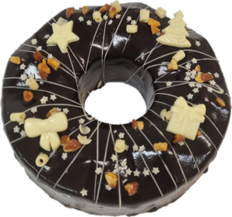 Indulge in the delightful fusion of decadence and charm with Erhard's Chocolate Vanilla Ice Cream Crown. This premium frozen dessert features a rich blend of dark and white chocolates, embedded with a creamy vanilla core, all made from pasteurised whole milk and fresh cream. The delight doesn't just end there! It's further adorned with caramelised almonds, white chocolate star decoration, and a touch of cocoa powder to balance the sweetness. Whether you're planning a grand holiday feast or a cosy night in, this dessert is perfect for any occasion that calls for a celebration.