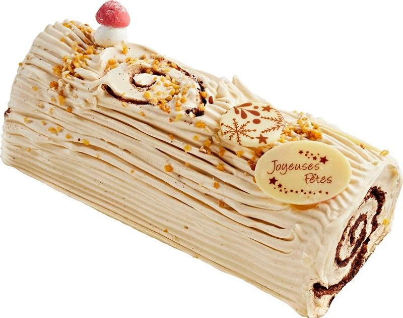Indulge your sweet tooth with Erhard’s Pastry Log With Buttercream and Praliné, a festive favorite that will make your holiday season even more special. This delightful dessert features a tender sponge cake filled with rich, creamy butter and praline paste, then topped with decorative mushrooms and white chocolate wafers for an enchanting appearance. Each bite is a surprise, with the varying textures and flavors blending harmoniously together, making it a truly luxurious treat.