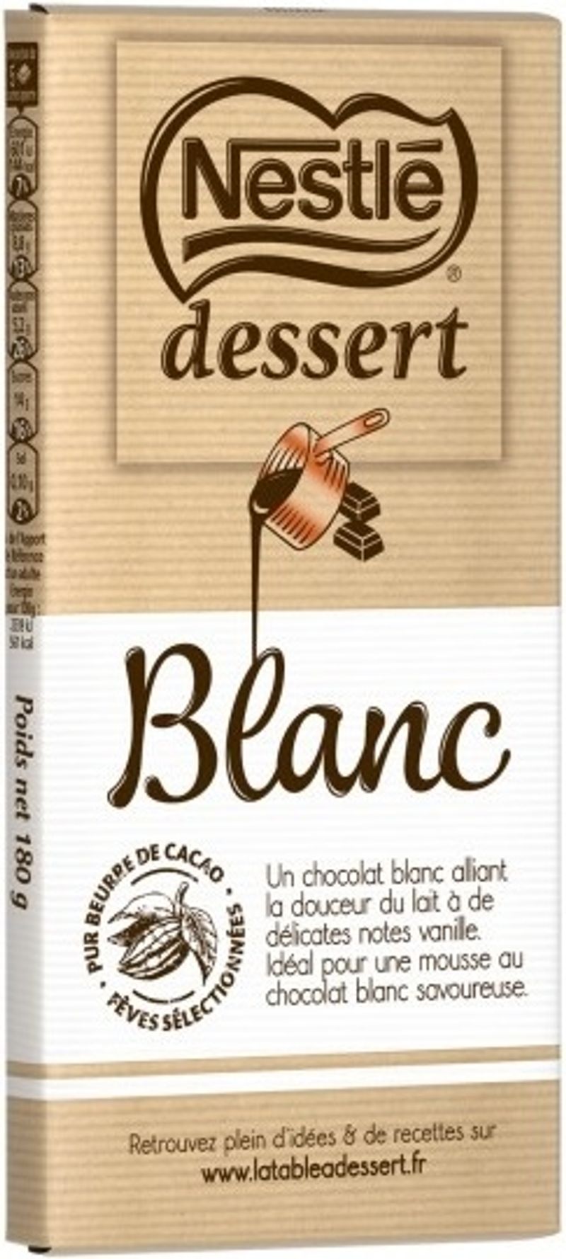 Add a touch of French culinary brilliance to your baking with Nestlé's White Cooking Chocolate. Made from a delectable blend of sugar, whole LAIT milk powder, and cocoa butter, this baking staple offers a rich, creamy flavor with a hint of natural vanilla. It's perfect for adding a luxurious touch to your pastries, desserts, and crepes. Please note, this product might contain traces of peanuts, nuts, and soy, ensuring you take into consideration any dietary restrictions.