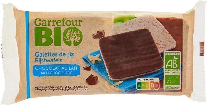 Indulge in the goodness of Carrefour's Organic Milk Chocolate Rice Cakes, a delightful fusion of creamy milk chocolate and crispy brown rice. With 55% organic milk chocolate, crafted from the finest organic cane sugar, organic cocoa butter, organic whole milk powder, and organic cocoa mass, these rice cakes offer rich, chocolaty satisfaction to your sweet cravings. Balanced with 45% organic brown rice, they bring a wholesome crunch that sets them apart from the regular sweet treats. Perfect for those on the lookout for a healthier, yet indulgent snack option. The presence of milk and soy also contributes to your body's daily protein intake.