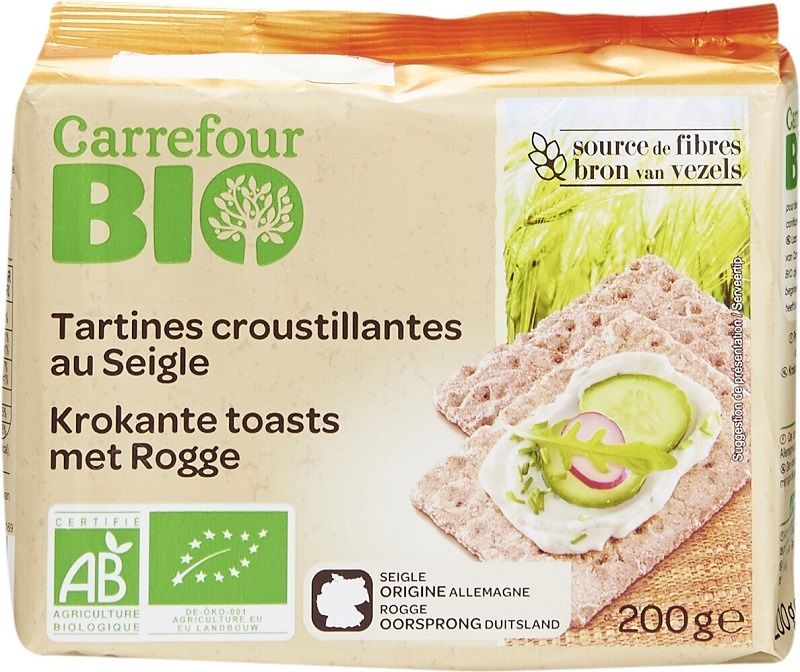 Carrefour's Organic Rye Toast is a delicious and nutritious addition to your meal. Made from 100% organic rye flour, this wholesome toast is packed with essential nutrients and dietary fibers that are beneficial for your digestive system and overall health. With just a touch of sea salt for flavor and a wonderfully crisp texture, our Organic Rye Toast not only satisfies your taste buds but also supports a balanced diet. Note: This product may contain traces of wheat gluten, egg, soya, milk, nuts and sesame seeds.