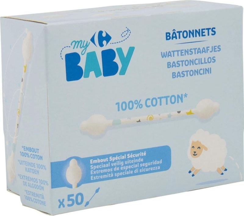 Introducing the Cotton Stem Baby from Carrefour, a high-quality swab uniquely designed to address all your baby's hygiene needs. This product, with its stem crafted from FSC-certified paper and a tip made of 100% pure cotton, ensures a gentle yet thorough clean. The Cotton Stem Baby is perfect for delicate areas, making it an essential part of your baby's toiletry kit. Hygienic, environmentally friendly, and safe for baby's skin, these cotton swabs are the ultimate in baby skincare.