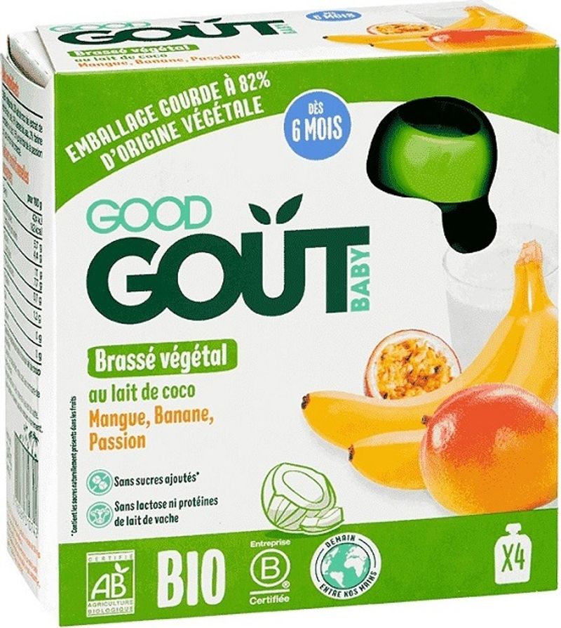 Introducing the Organic Coconut Mango Banana Passion Plant Brew from Good Goût - a delightful blend of tropical flavors your baby will love. Made with the goodness of 38.5% organic mango, 33% coconut milk, 16% organic bananas, and a hint of organic passion fruit juice, this plant brew is packed with essential nutrients to support your baby's growth and health. The touch of organic wholemeal rice flour adds extra fiber while the drop of organic lemon juice concentrate enhances the fruity flavor. Free from added sugars and lactose, it's an ideal natural and organic dessert for your little one.