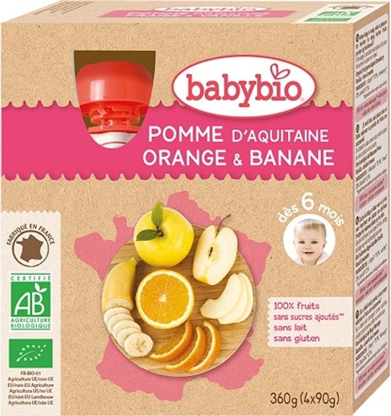 ORGANIC AQUITAINE APPLE ORANGE BANANA 4X90G