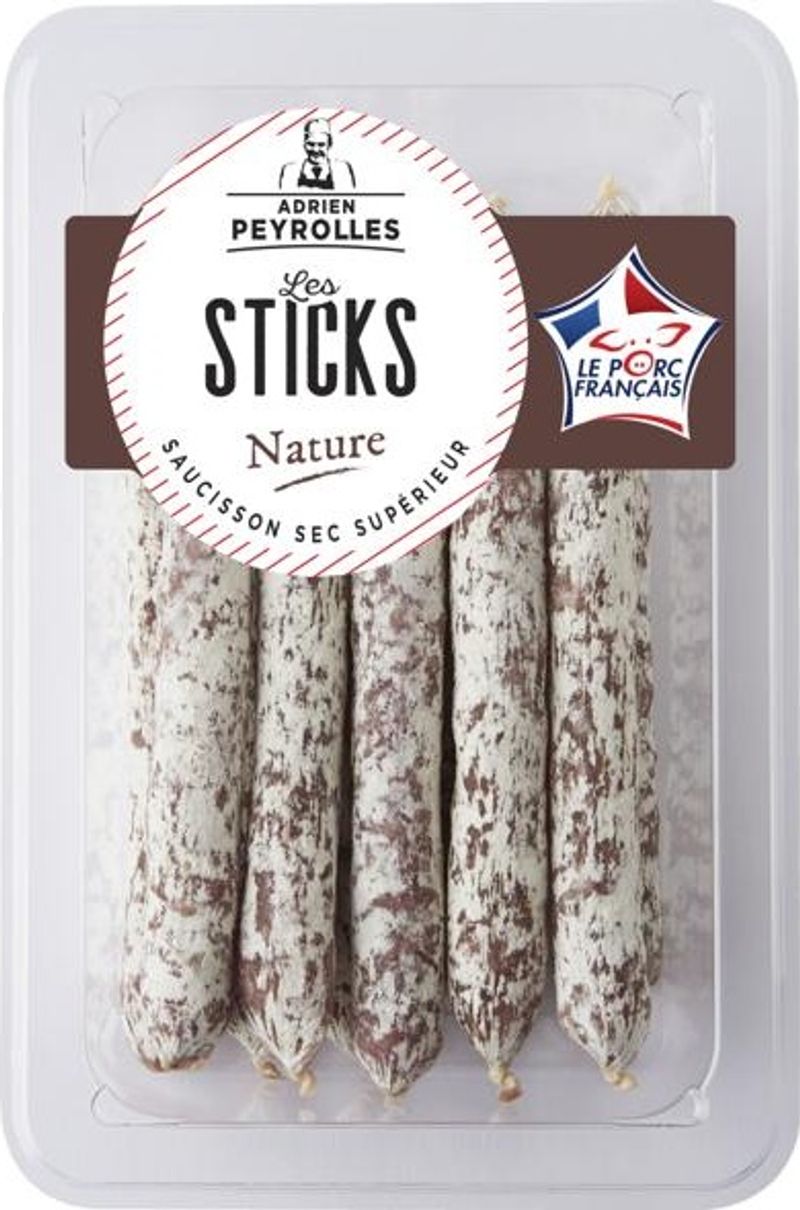 Indulge in a taste of French culinary tradition with Adrien Peyrolles' Mini Dry Sausages. Exquisitely crafted in France, these gourmet sausages are made with top-quality French pork meat, skillfully seasoned with a unique blend of spices that includes peppers, garlic, mace, and clove, then carefully preserved with potassium nitrate and sodium nitrite. Enjoy the savory richness of pork, the milky tang of lactose and the subtle sweetness from sugar and dextrose. Please note, this product may contain nuts.