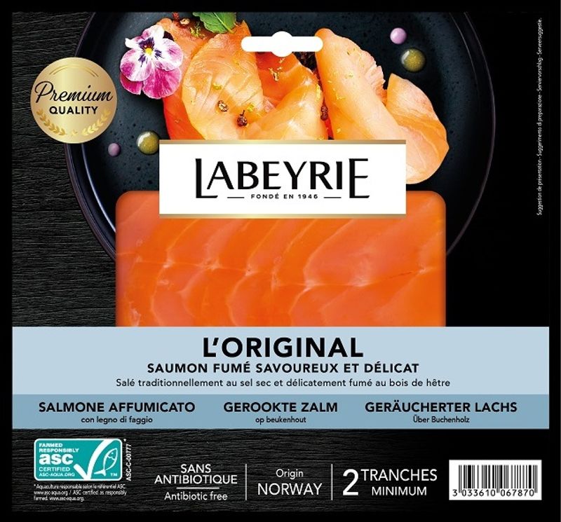 Indulge yourself in the rich, smoky flavor of Labeyrie's Smoked Salmon L’Original - a gourmet delight straight from the heart of France. Made from the finest Atlantic salmon (salmo Salar), every slice is a testament to the careful selection and meticulous preparation that Labeyrie is known for. Salt-cured and then slowly smoked over beech wood, this smoked salmon offers a delicate balance of savory and smoky notes that is sure to elevate your culinary experience. Whether it’s a special celebration, an intimate dinner, or a festive holiday meal, this smoked salmon is sure to impress.