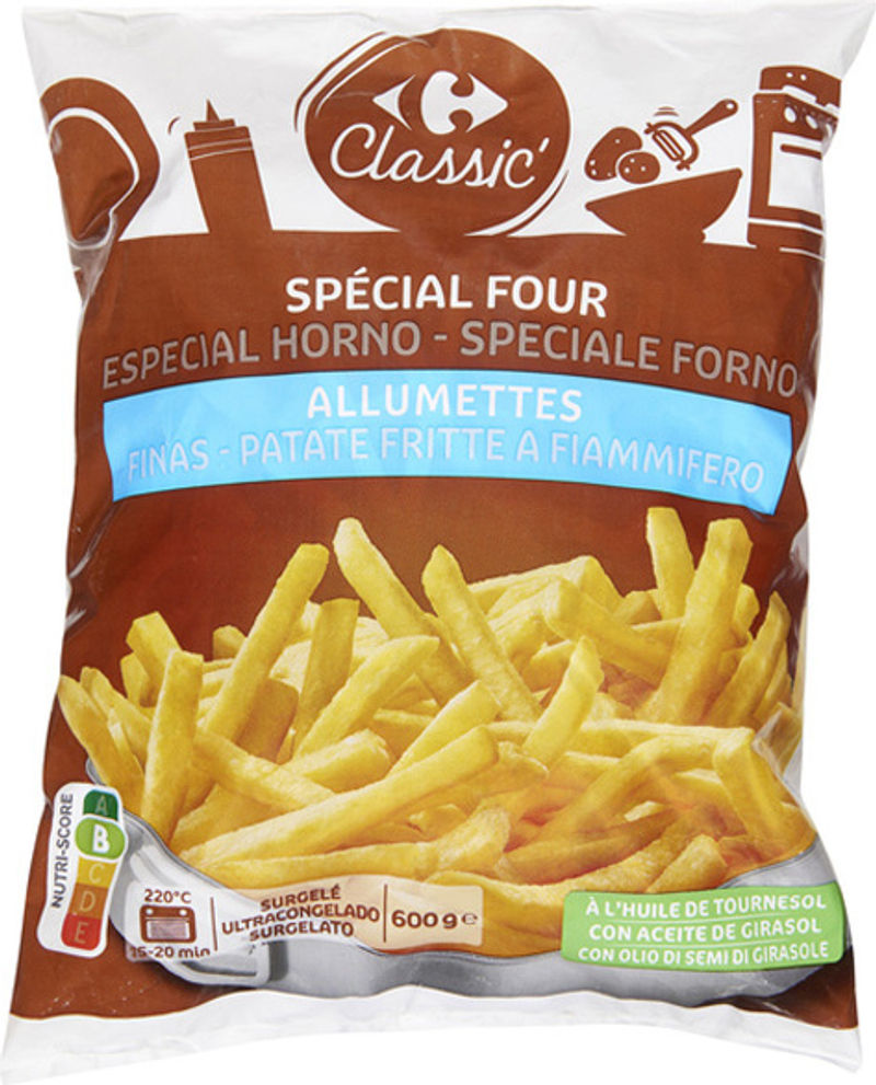 Carrefour Thin-Cut French Fries are easy to prepare and versatile. Preheat your oven to 220°C (Thermostat 7), spread the fries on a baking sheet without overcrowding them, and bake for approximately 15-20 minutes until golden brown and crisp. Turn halfway through cooking for even results. These fries are perfect as a side dish for burgers, fish, or any main course you fancy.
