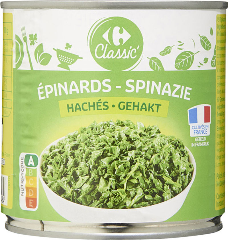Introducing Carrefour's Chopped Spinach, a healthy and convenient addition to your pantry. Packed with essential nutrients, this premium quality spinach is harvested at the peak of freshness and immediately chopped and canned to preserve its natural taste and nutritional value. With just a hint of salt and water added, it's a low-calorie, low-fat, and high-fiber option that can add a nutritional boost to any meal. Encased in a lightweight, easy-to-open tin, our chopped spinach is perfect for those who value both health and convenience.