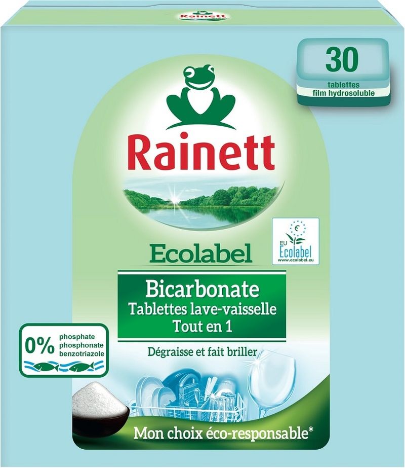 Experience a new level of cleanliness and environmental consciousness with the Rainett Ecolabel Bicarbonate Dishwasher Tablets. Meticulously crafted to provide a powerful clean while respecting the environment, Rainett has revolutionized home cleaning essentials. Each tablet is imbued with bicarbonate, a natural ingredient known for its excellent cleaning properties, ensuring a spotlessly clean and fresh-smelling kitchenware every time. It's not just about maintaining a clean kitchen, but also about contributing to a healthier planet.