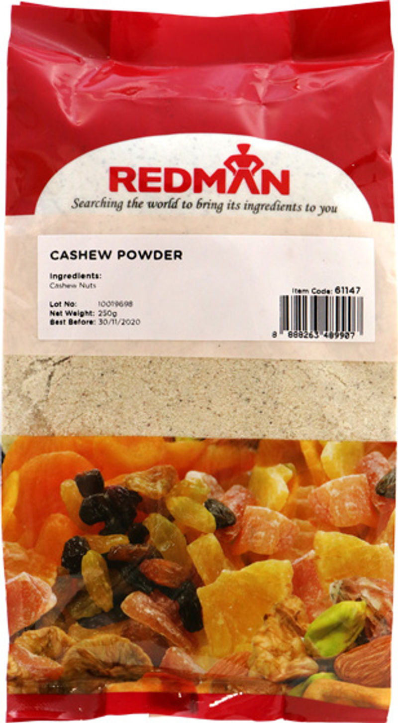 Our Redman Cashew Powder 250g is a delicious, versatile ingredient produced from carefully harvested cashews sourced from the lush forests of Indonesia. This unique powder boasts a rich, nutty flavour that complements a diverse range of dishes, and a buttery texture that enriches the mouthfeel of your recipes. Beyond its culinary appeal, this cashew powder is packed with beneficial nutrients such as proteins and antioxidants, making it a healthy addition to your meals. Its cholesterol-free composition also makes it a heart-friendly choice.