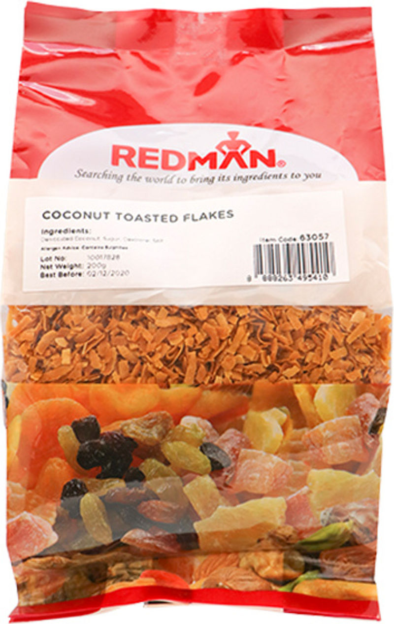 Indulge in the delicious and fragrant Redman Toasted Coconut Flakes. Each 200g pack is filled with high-quality, desiccated coconut that's been lightly toasted to perfection for an irresistible crunch. Sweetened with sugar and dextrose, and seasoned with a hint of salt, these coconut flakes are a fantastic way to add a tropical twist to your bakes. This product is also available in 250g, 600g, and 800g sizes. Please note that this product contains sulfites.
