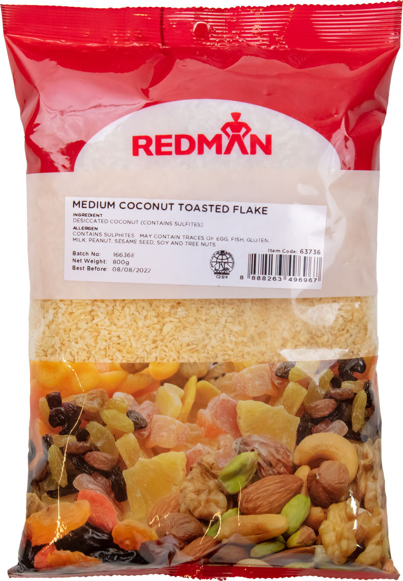 Redman's Medium Toasted Coconut Flakes are a delightful addition to enhance the taste and texture of your favorite desserts. Imported with care and toasted to a medium perfection, these coconut flakes are a chewy delight that will give your recipes a fragrant twist. Whether you're adding them to a tropical recipe or creating a new fusion dish, this 800g pack promises freshness, quality, and a taste of the tropics in every serving.