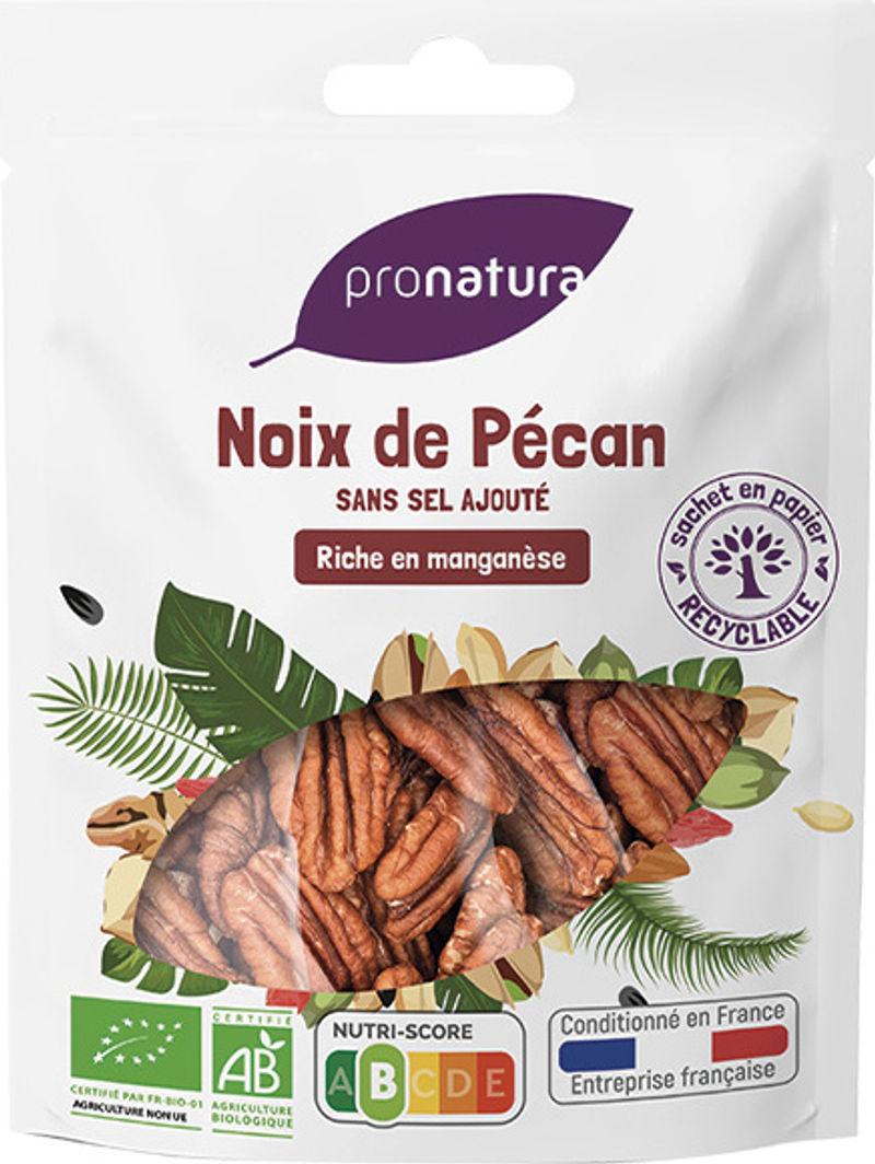 Indulge in the rich, buttery flavor of Pronatura's Organic Pecans with No Added Salt. These delectable pecans are loaded with heart-healthy monounsaturated fats and packed with vital nutrients like magnesium, fiber, and antioxidants, making them a nutritious snack or flavorful addition to your favorite recipes. Sourced from the lush Californian area, these organic pecans bear the testament of Pronatura's commitment to high-quality, organically grown products, ensuring you enjoy the purest, most delicious pecans nature has to offer.