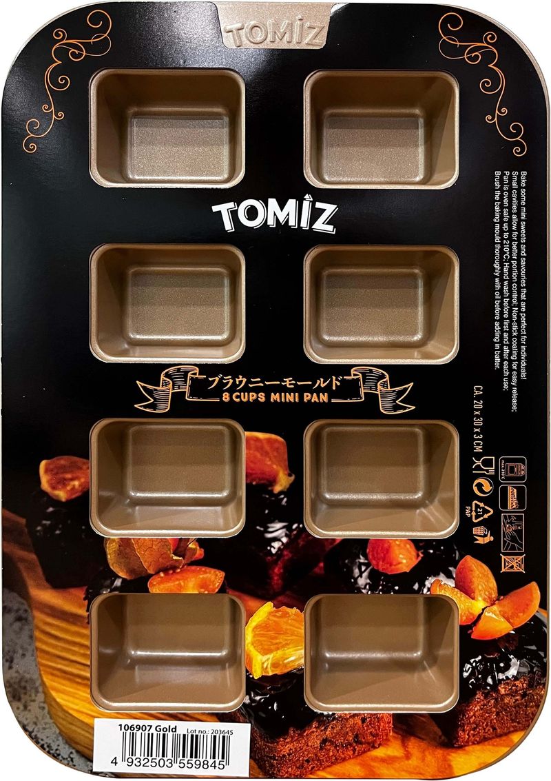 The 8 Cup Brownie Square Mould(Gold) 193WX293HMM by Tomiz is an essential tool for any baking enthusiast. This high-quality mould, established in Japan and made in Indonesia, provides perfect brownies every time. With its golden glossy finish and sturdy design, it's not just durable but also a stylish addition to your kitchen. Tomiz, a leading baking ingredients and tools supplier since 1919, ensures this mould meets the highest standards, making it suitable for both professionals and home bakers alike.
