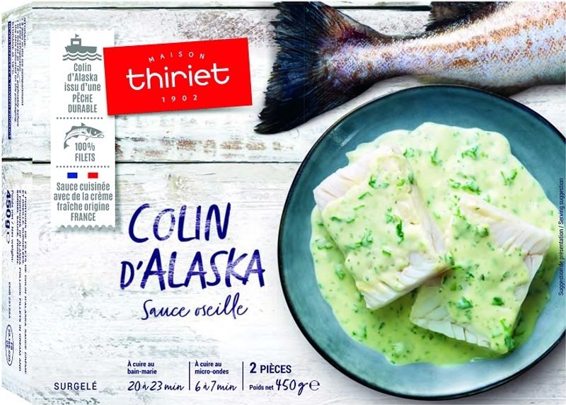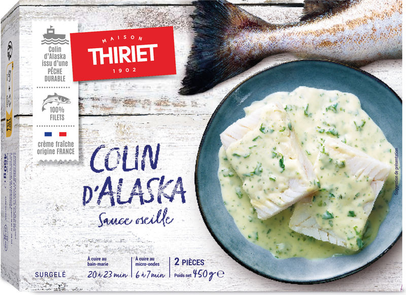 Savour a taste of the sea with Maison Thiriet's Alaskan Coley, Sorrel Sauce. This ready-to-eat meal is a delectable blend of succulent Alaskan Coley fillets, served in a creamy, tangy Sorrel sauce. Each pack is filled with the fresh and wholesome goodness of premium ingredients like rich French cream, real butter, aromatic white wine, and delicate shallots. With a comforting 12.3% of thick French-origin cream and a touch of white pepper, this frozen delight is the perfect solution for those looking to enjoy a gourmet meal, straight from the convenience of their freezer.