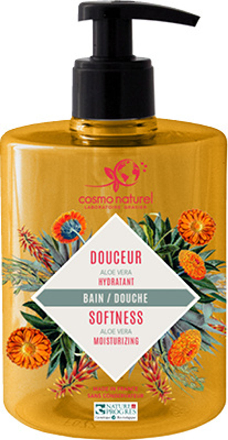 Indulge in the soothing and rejuvenating powers of aloe vera with Cosmo Naturel's Organic Aloe Vera Shower And Bath Gel - Large. This natural shower gel is crafted with a unique blend of ingredients like Coco-Glucoside, Coco-Betaine, Calendula Officinalis Flower Extract, and organic essential oils, all working together to not only cleanse your skin but also nourish it. Its calming aloe vera formula provides a refreshing and cooling sensation, making your bath a more relaxing experience. Free from synthetic preservatives, dyes, GMOs, and petrochemicals, this organic shower gel is cruelty-free and adheres to the Nature & Progres label.