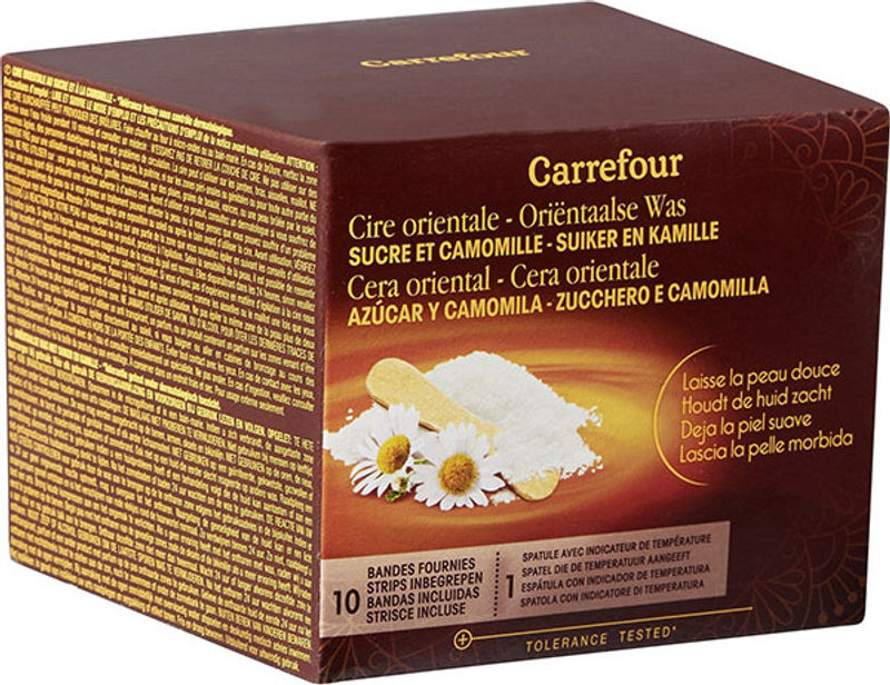 To use Carrefour's Oriental Wax Sugar Chamomile, start by heating the wax until it reaches a comfortable temperature. Apply the warm wax onto the target area in the direction of hair growth. Allow it to cool and then swiftly pull it off in the opposite direction of hair growth. Ensure your skin is clean and dry before application for maximum results. Always perform a patch test 24 hours prior to use to check for any sensitivity or allergic reactions.